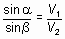 где a – угол падения, b – угол преломления, V1 –скорость света в среде 1, V2 – скорость света в среде 2. На рисунке 1.12 приведен пример распространения света на границе раздела сред.