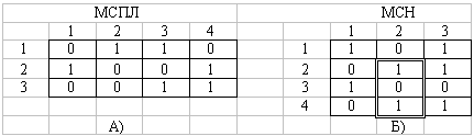Рисунок 15.1 – Алгоритм работы подпрограммы поиска свободного пути Программная организация процесса поиска пути предполагает использование следующих данных: - количество и размерность коммутаторов на каждом звене КП, - число промлиний между каждой парой соседних звеньев, - количество направлений и число приборов для каждого из них, - справочная информация о закреплении приборов (линий) за конкретными выходами КП; - граф доступности, отражающий реальные связи звеньев и изображающий все доступные пути между двум маркированными точками КП, - состояние промлиний и выходов КП, Процедура поиска свободного соединительного пути в КП обычно оформляется в виде специального модуля (подпрограммы), к которой при необходимости может обратиться любая из программ обработки путем формирования заявки. В заявке должны быть указаны следующие данные: - адрес точки входа в КП, для которой необходимо выполнить поиск пути; - адрес точки выхода из КП (группы точек), к которой (к одной из которых) ведется поиск пути; . - тип поиска ("точка-точка", "точка-группа точек" или другие комбинации) или режим искания; - маршрут поиска (в пределах данного блока КП, между двумя заданными блоками КП). Данные о состоянии элементов КП группируются в два массива: массив состояний промлиний (МСПЛ) и массив состояний выходов направлений (МСН). В массиве МСПЛ информация о состояниях промлиний между двумя соседними звеньями КП. записывается в отдельном подмассиве (АВ,ВС..), при этом каждой промлиний отводится один разряд памяти. Состояния выходов КП, к которым подключены линии или групповые приборы, хранятся в массиве МСН, его также делят на подмассивы (МСН0,МСН1,...), каждый из которых отражает состояние выходов одного направления. Отдельному выходу КП в памяти ЭУС отводятся два бита, по содержимому первого бита УУ определяет свободность или занятость (с/з) прибора, а по содержимому второго бита - состояние блокировки или разблокированности прибора (б/р). Поиск пути в двухзвенном КП На рисунке 15.2 показана двухзвенная схема со следующими структурными параметрами: na- число входов в коммутатор звена А (nа = 5);ma - число выходов из коммутатора звена А (ma =4); Кa - число коммутаторов на звене А ( Ка = 3); mв - число выходов коммутатора звена В (mв = 3). Поскольку схема является односвязной, остальные структурные параметры определяются следующим образом: nв=ка, кв=mа. Во входы звена А включаются абонентские комплекты (АК), а выходы звена В разделяются на отдельные направления, каждое из которых предназначено для включения групповых (служебных) комплектов одного из типов; комплекты приема номера (КПН), комплекты посылки вызовов (КПВ), комплекты посылки сигнала " Занято" (КПЗ) и т.п, В частности, на рисунке показаны только КПН двух типов в соответствии с существующими типами номеронабирателей (НН): ДКПН для дискового НН и ТКПН для тастатурного (кнопочного) НН. После обнаружения поступившего вызова в одном из АК, номер которого записывается программой сканирования в буфер заявок на обработку (БЗО), возникает необходимость подключить к нему КПН. Тип КПН зависит от типа НН, установленного в соответствующем телефонном аппарате, и определяется с помощью таблицы пересчета (ТП) "Номер АК - Тип КПН", хранящейся в памяти ЭУС. Для рассматриваемой структуры коммутационного поля (КП) данную таблицу удобно представить в вид